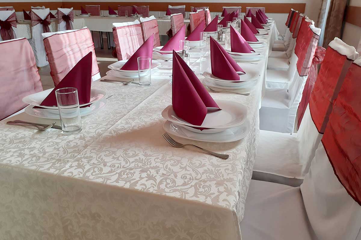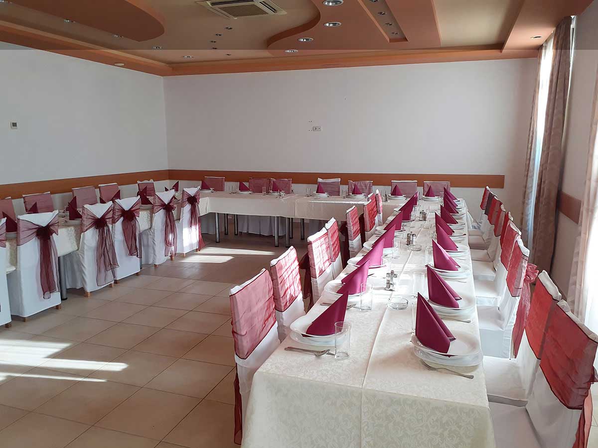 Prostor u salama može da se organizuje i oprema po posebnim zahtevima gosta. Meni može biti tipski, ili prilagođen posebnom zahtevu gosta.