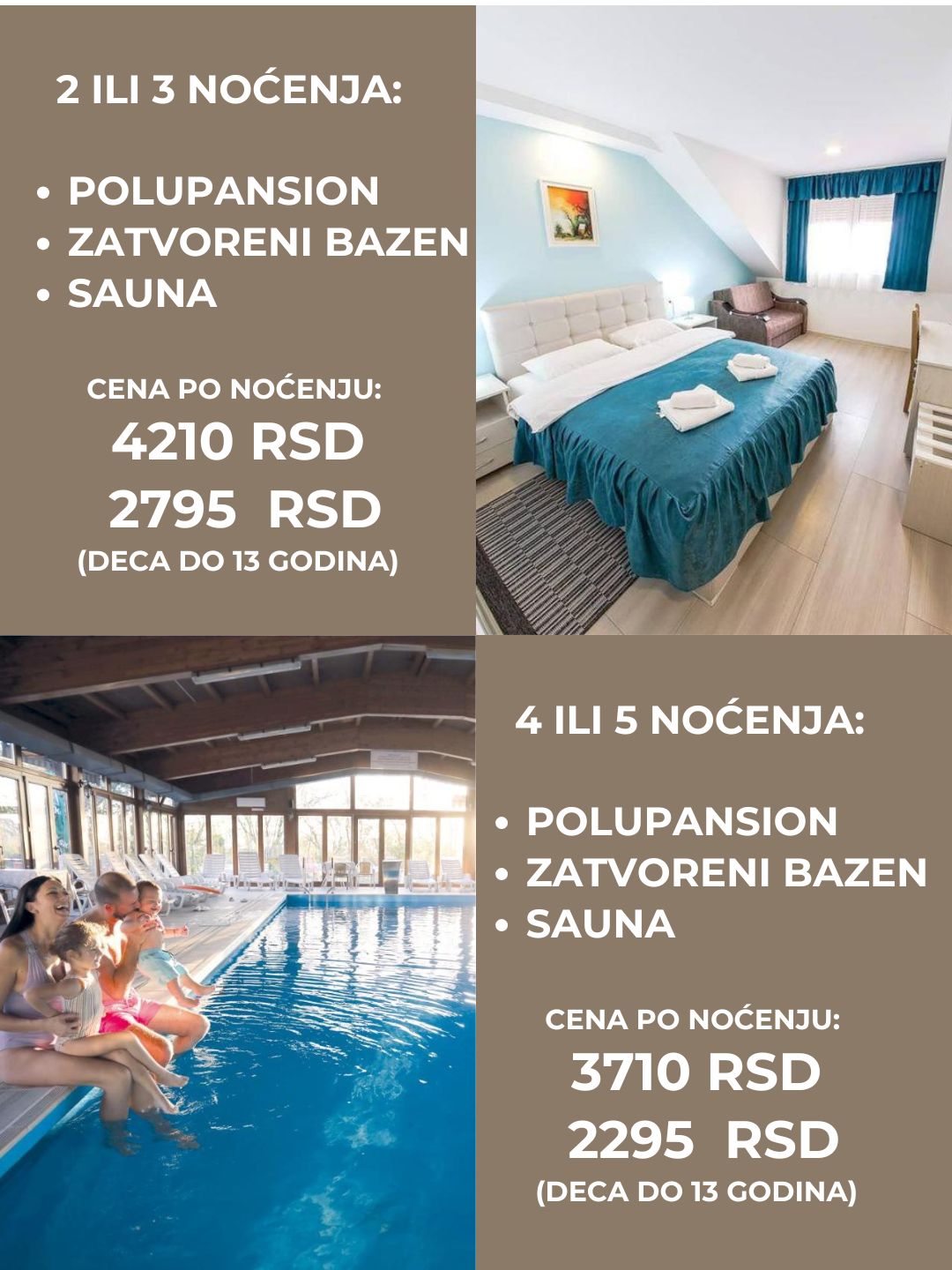 Uživajte u toploj atmosferi Ravnog Gaja dok sami kreirate svoju idealnu ponudu – izaberite broj noćenja, obroke i dodatne sadržaje koji vam najviše prijaju. Jesen nikad nije bila udobnija!